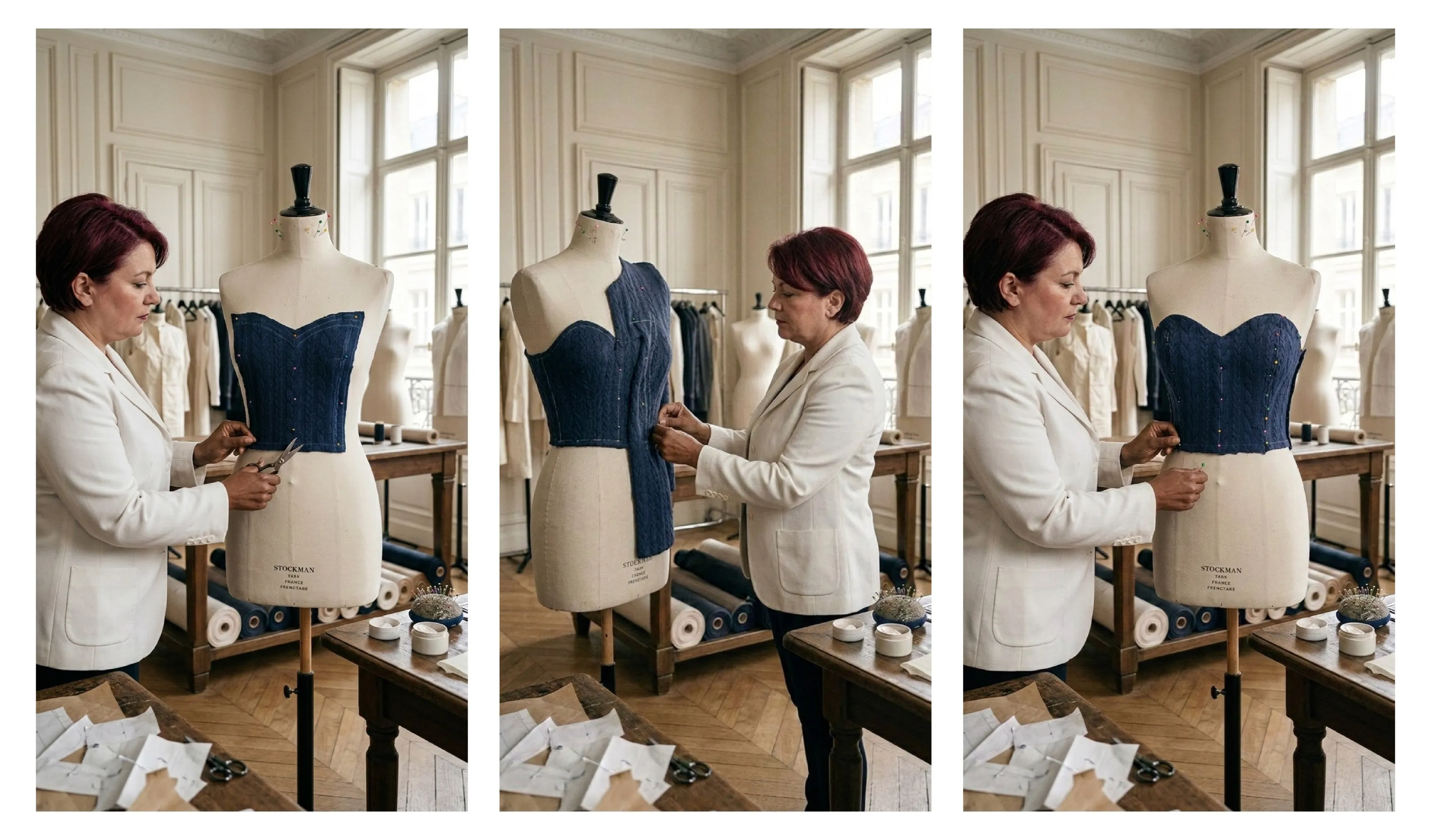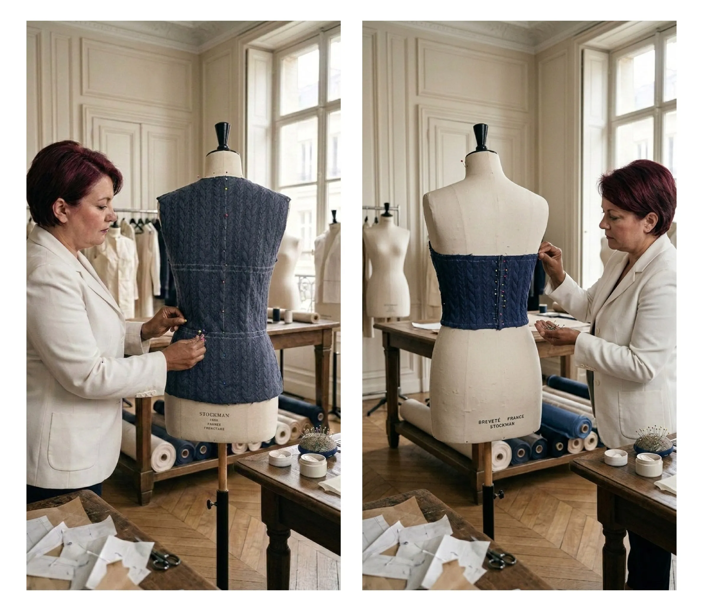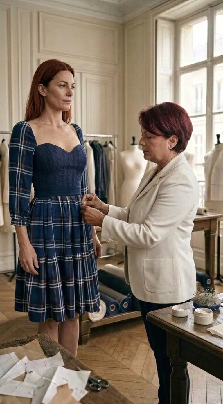Dans le cadre de ma pratique personnelle de création textile, j’ai conçu un vêtement à partir de l’association de deux pièces existantes : une robe en viscose tartan et un pull en maille texturée. L’objectif de ce projet était d’explorer la transformation de matières et de volumes afin de créer une nouvelle silhouette cohérente. Le processus a commencé par une phase de recherche autour des textures et des associations de tissus, suivie d’un travail de modélisme et de moulage directement sur mannequin. Cette approche m’a permis de construire progressivement la forme du vêtement, d’ajuster les volumes et d’affiner les proportions jusqu’à obtenir la pièce finale. Ce projet illustre ma manière d’aborder la création : observer, expérimenter et ajuster chaque étape du processus afin de trouver l’équilibre entre esthétique, structure et fonctionnalité.